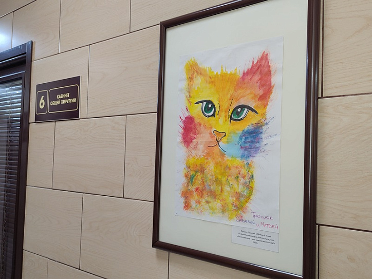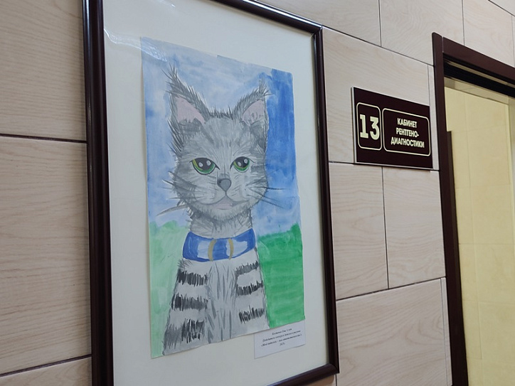 Во второй части церемонии, провели увлекательную экскурсию по ветеринарной клинике, где ребята смогли посмотреть работу ветеринарных врачей, посмотреть, как проводится обследование и лечение пациентов, наиболее увлеченным ребятам предоставили возможность посмотреть в микроскоп, послушать, как работает стетофонендоскоп, примерить рентгенозащитный фартук и оценить тяжесть его свинцовых пластин. Здесь же ребята увидели своих работы, которые уже размещены на стенах клиники, и доступны для просмотра для всех посетителей клиники. Работы победителей украсили стены наших 3-х филиалов, работы размещены на Свердловском тракте, 18 а, Марченко, 7в и Университетской набережной, 52 – так что владельцы наших четвероногих пациентов, смогут насладиться удовольствием от просмотра работ, почти во всех наших структурных подразделениях.