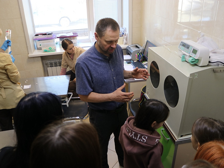 Главный врач ОГБУ «Челябинская ветстанция» Полосков Иван Николаевич рассказала школьникам о сети государственных ветеринарных клиник ОГБУ «Челябинская ветстанция», подробно рассказал о самой профессии и ЮУрГАУ месте, где можно получить образование, нужную и гуманную профессию, о историях, которые происходят с животными, как происходит процесс лечения животных, какие операции проводятся, ознакомил с материалами расположенными на сайте Учреждения.